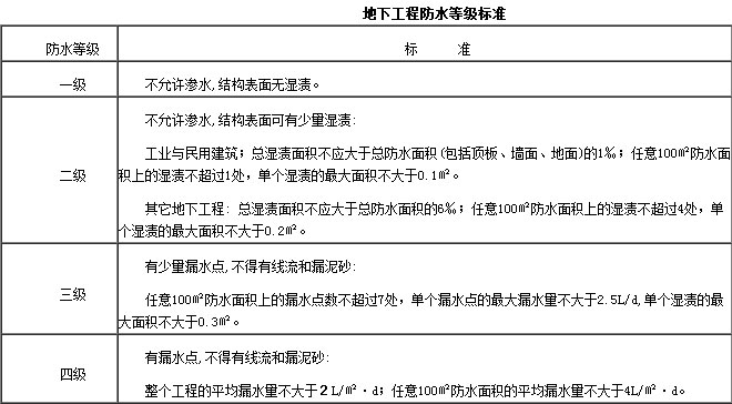 地下工程防水應根據工程的性質,使用功能埋置深度地下水位和壓力等條件選擇設防標準,設計定級應準確,方案可靠,施工簡便,經濟合理,堅持遵循“防、排、截、堵:以防為主,多道設防,剛柔結合,因地制宜,綜合治理”的原則進行。