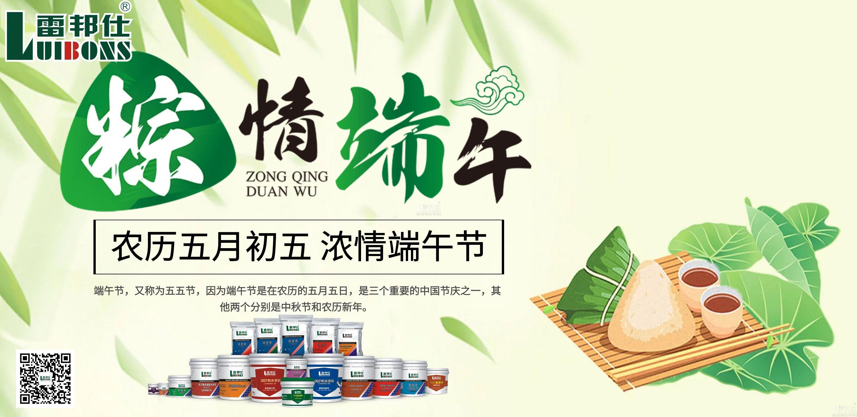 在日漸激烈的防水市場競爭中,雷邦仕始終視產品質量為“生命”,清楚“品牌、品質、創新、服務和文化”均為企業生命至關重要的組成部分,兢兢業業,一步一個腳印,穩步前進,以質量的穩定性推進防水產業的發展。在端午佳節到來之際,祝廣大合作伙伴和業主朋友們端午安康!萬事如意!