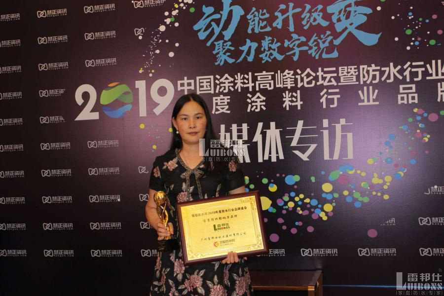 6月22日,由買(mǎi)化塑、慧正資訊主辦,慧聰涂料網(wǎng)、慧聰防水網(wǎng)、慧聰涂裝網(wǎng)、慧聰化工網(wǎng)、慧樂(lè)居聯(lián)合主辦的“動(dòng)能升級(jí)·聚力數(shù)字銳變”2019中國(guó)涂料高峰論壇暨涂料行業(yè)品牌盛會(huì)在上海虹橋綠地鉑瑞酒店成功舉辦。“凝聚產(chǎn)業(yè)智慧,賦彩行業(yè)品牌”活動(dòng)中舉行了規(guī)模盛大的品牌盛典頒獎(jiǎng)活動(dòng),對(duì)過(guò)往一年中具有突出表現(xiàn)的品牌進(jìn)行表彰。其中廣州雷邦仕化工建材有限公司(以下簡(jiǎn)稱(chēng):雷邦仕)憑借卓越的表現(xiàn)榮獲2019防水行業(yè)品牌盛會(huì)——家裝防水影響力品牌。廣州雷邦仕總經(jīng)理盧育苗(以下簡(jiǎn)稱(chēng):盧總)在頒獎(jiǎng)典禮現(xiàn)場(chǎng)接受采訪(fǎng)。