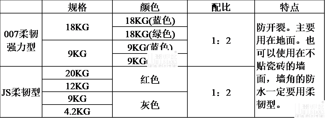 推薦使用雷邦仕有007防水漿料柔韌強力型和JS柔韌型防水漿料兩種,他們都是雙組分的。