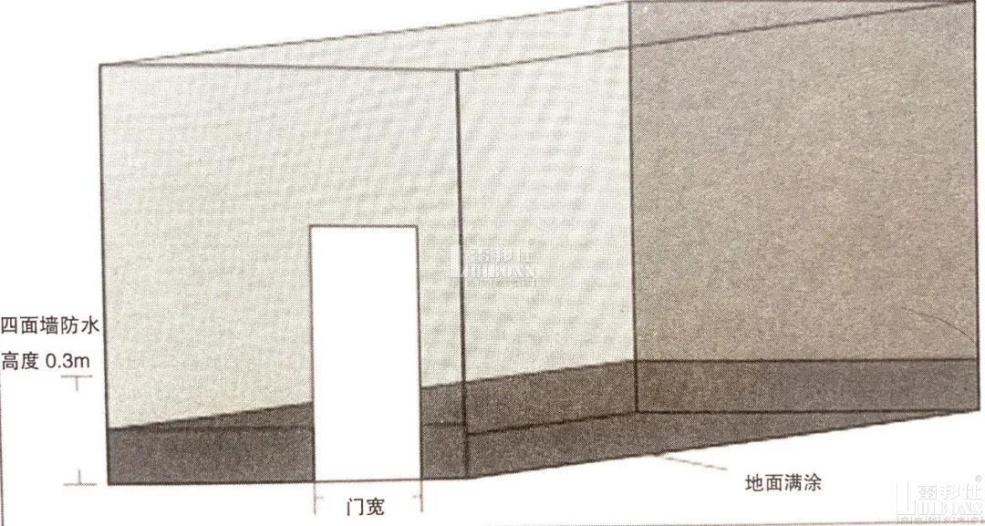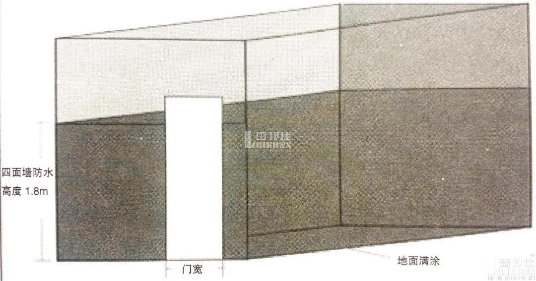 廚房墻面防水一般要求做到0.3m,地面涂滿,則